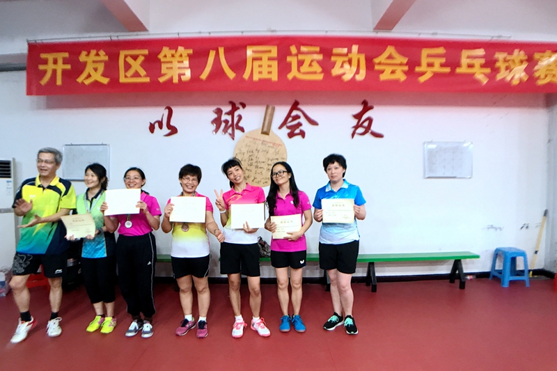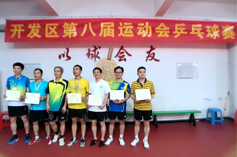 中山火炬開發(fā)區(qū)第八屆全運會乒乓球賽于6月11日結(jié)束,國家健康基地乒乓球隊運動員經(jīng)過奮力拼搏,榮獲男子單打金牌,女子團(tuán)隊銀牌,女子單打銅牌,女子單打第四名,男子團(tuán)隊第五名,領(lǐng)導(dǎo)組女子單打第四名、第五名,共獲得獎牌7枚,獲得獎牌數(shù)居全區(qū)第一。