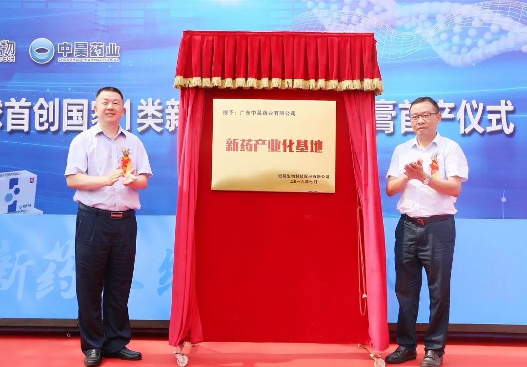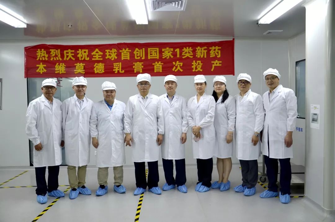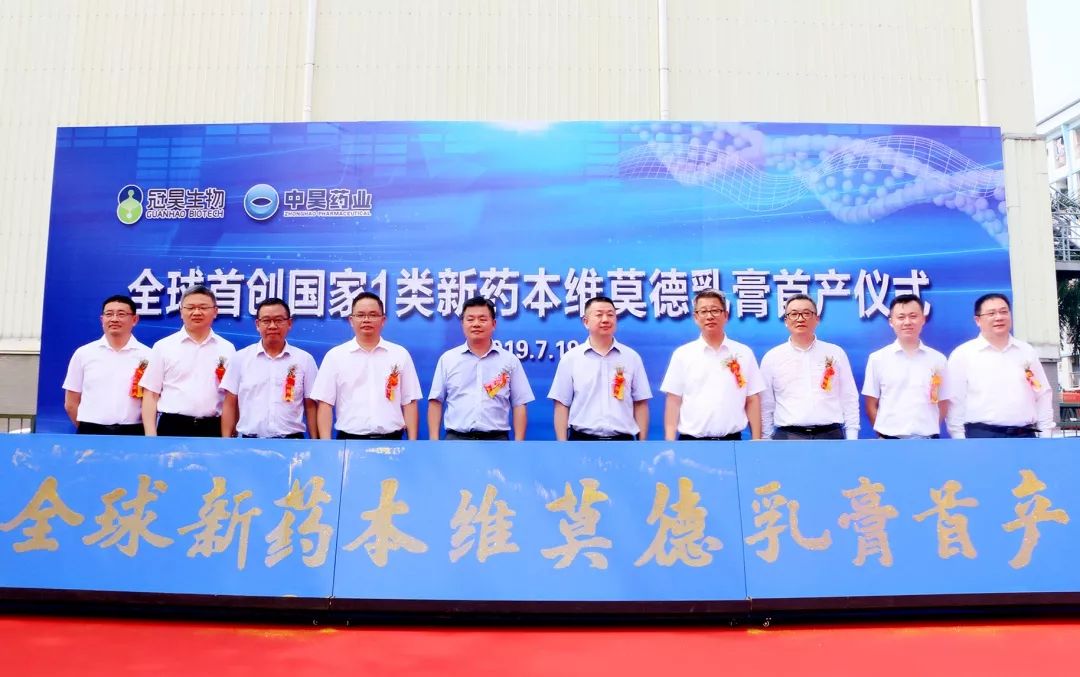 2019年7月19日上午,“全球首創(chuàng)國家1類新藥本維莫德乳膏首產(chǎn)”儀式在國家健康基地園區(qū)企業(yè)——廣東中昊藥業(yè)有限公司(以下簡稱“中昊藥業(yè)”)隆重舉行,這標志著我國建國70年來第一個皮膚領(lǐng)域first-in-class的化學(xué)創(chuàng)新藥投產(chǎn)上市!