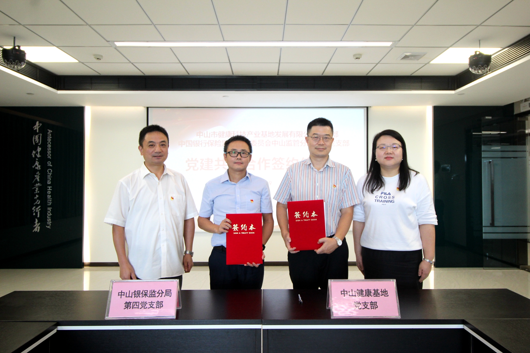 調(diào)研交流之后,中山市健康科技產(chǎn)業(yè)基地發(fā)展有限公司黨支部和中國銀行保險(xiǎn)監(jiān)督管理委員會中山監(jiān)管分局第四黨支部共同簽訂黨建共建備忘錄。本次簽約是繼2019年4月與中國建設(shè)銀行中山分行黨委共同簽訂黨建共建備忘錄后的又一重要合作成果,標(biāo)志著健康基地高度重視資本對產(chǎn)業(yè)的助推作用,并與中山銀行業(yè)、保險(xiǎn)業(yè)及其監(jiān)管部門保持緊密合作,資源共享,優(yōu)勢互補(bǔ),共同推進(jìn)黨建工作質(zhì)量邁上新臺階,為健康醫(yī)藥產(chǎn)業(yè)發(fā)展保駕護(hù)航。
