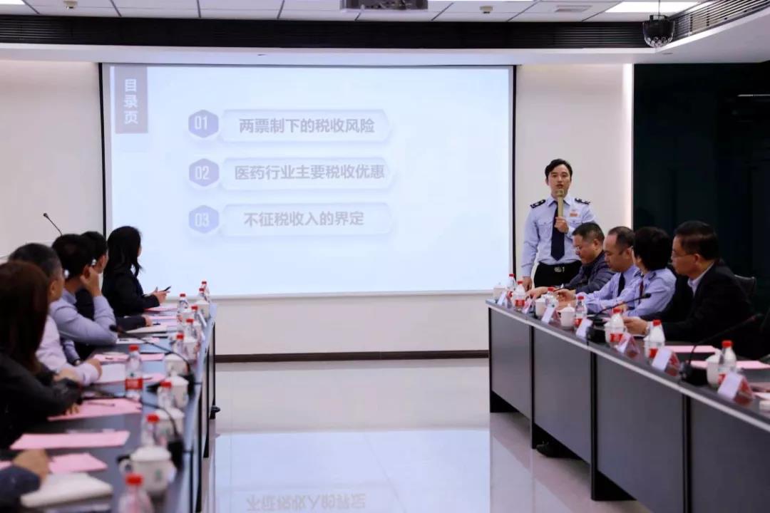 會上,開發(fā)區(qū)稅務局稅源管理一股副股長劉海山向醫(yī)藥企業(yè)代表介紹了兩票制下的稅收風險、醫(yī)藥行業(yè)主要涉及的稅收優(yōu)惠政策、不征稅收入的界定等稅收政策及醫(yī)藥企業(yè)關(guān)心的熱點問題。并針對醫(yī)藥行業(yè)的顯著特征,以案例分析了醫(yī)藥企業(yè)可享有的各種稅收優(yōu)惠。