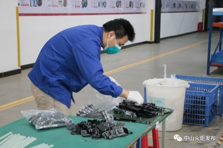 2月17日,在健康基地園區(qū)企業(yè)——廣東英得爾實(shí)業(yè)發(fā)展有限公司的車間里,機(jī)器的轟鳴聲再次響起,70名工人戴著口罩,熱火朝天地開足馬力生產(chǎn)設(shè)備。氣泵聲、電鉆聲、馬達(dá)聲等交織在一起,組成了一曲華麗的機(jī)器交響樂。