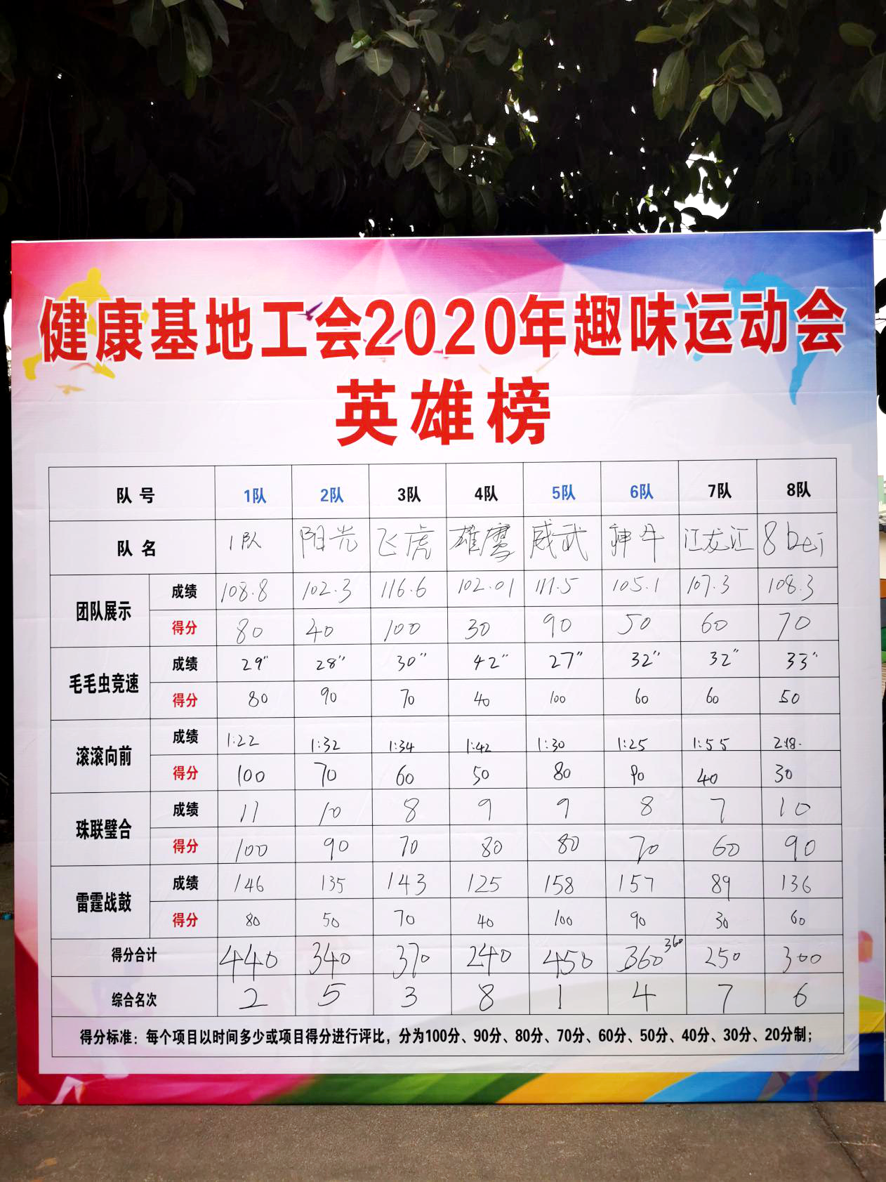 比賽在一片緊張歡快的氣氛中結(jié)束了,這是健康基地集團合并后第一次舉辦戶外集體活動;顒犹嵘瞬块T與部門之間、員工與員工之間的融合度,增加了員工對公司的向心力和凝聚力,為公司2021年的發(fā)展奠定了基礎(chǔ)。