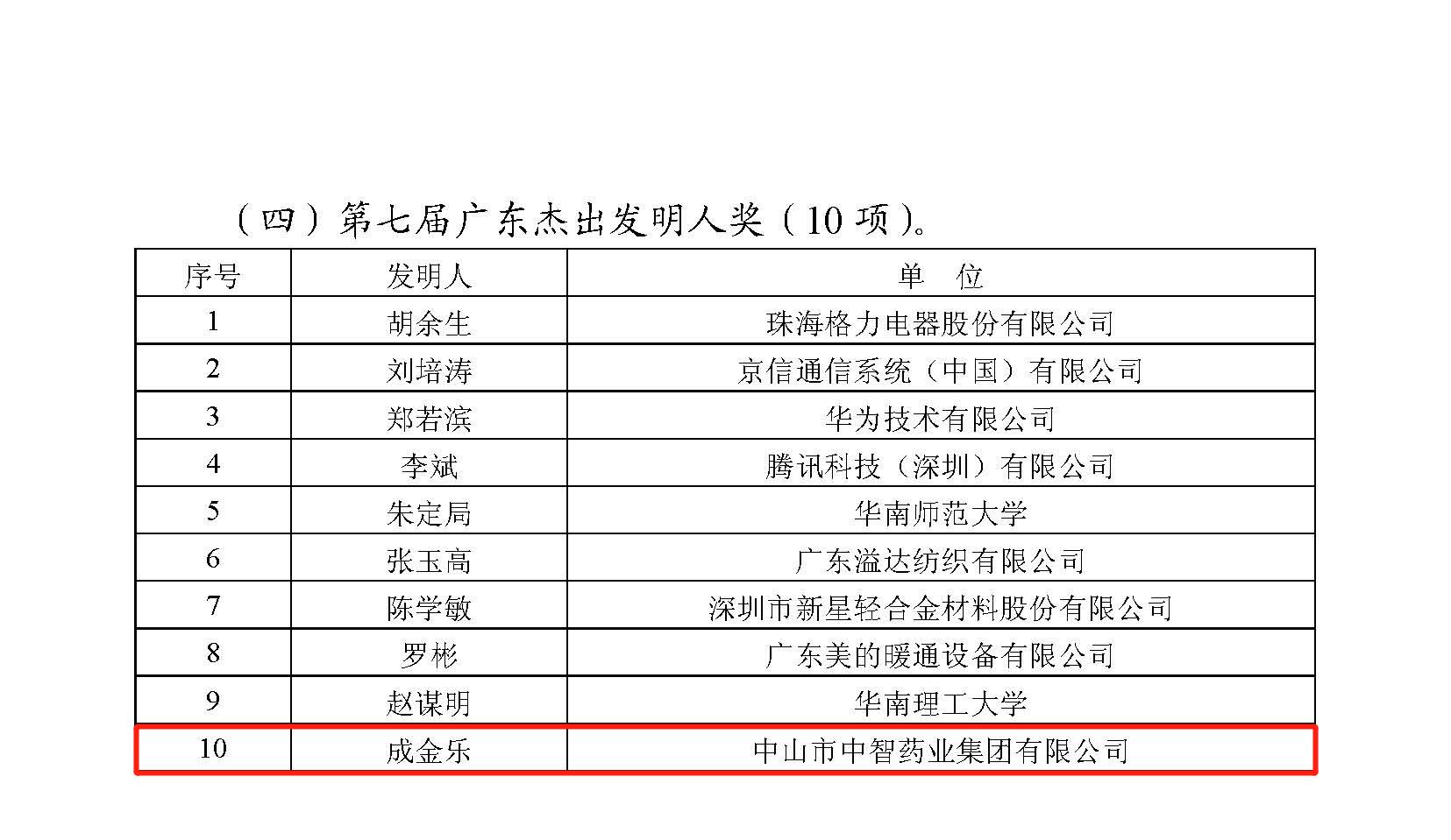 中智藥業(yè)破壁飲片技術帶頭人成金樂獲第七屆廣東杰出發(fā)明人獎