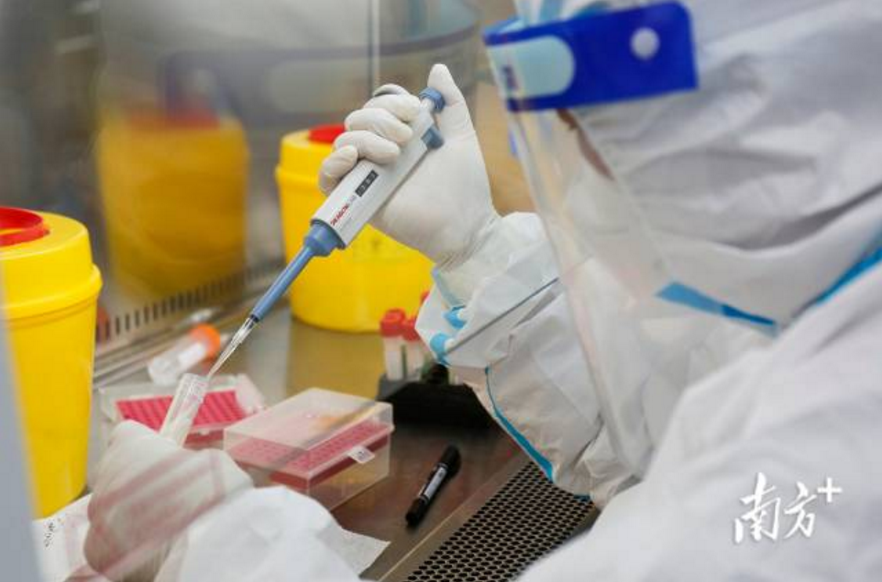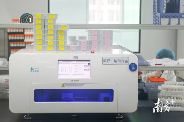 從1號盒子到6號盒子,大約需要75分鐘。為了進一步辨別“純化RNA”是否屬于新冠肺炎病毒,樣本還要被人工轉(zhuǎn)移至PCR儀器進行檢測,最終得到檢測報告。這個過程下來,整個檢測最快需要3小時。連日來,中山市核酸城市檢測基地負(fù)責(zé)人齊增恒與近500名同事,通宵達(dá)旦地檢測核酸樣本。
