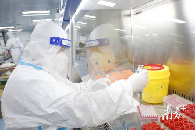 從核酸樣本采集那一刻算起,12小時內(nèi)要出具檢測報告。實驗室內(nèi),上百名工作人員實行“兩班倒”,24小時“連軸轉(zhuǎn)”。