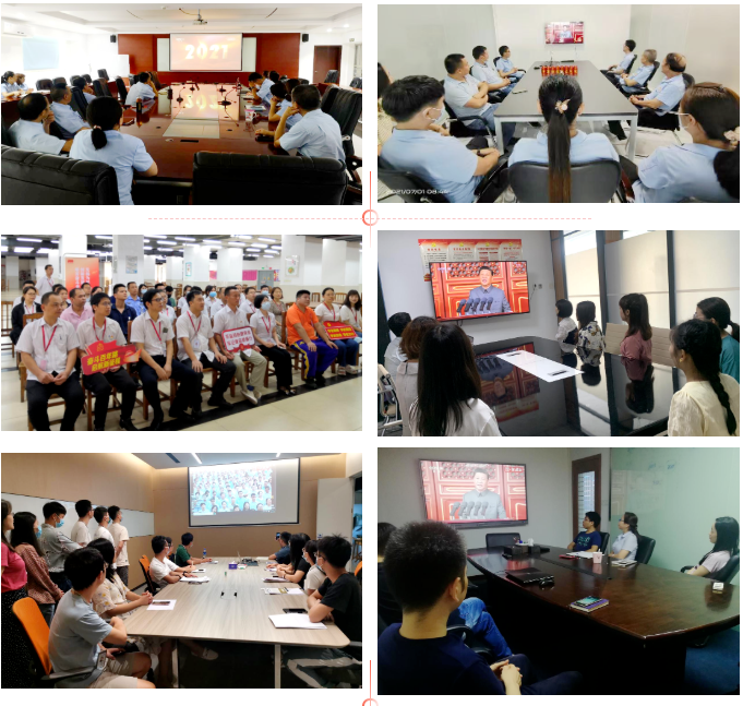 健康基地集團園區(qū)黨委組織全體班子及黨員集中收看慶祝大會直播,感受這激動人心的歷史時刻,全神貫注聆聽習近平總書記重要講話。園區(qū)兩新黨支部同步組織黨員一同觀看直播。