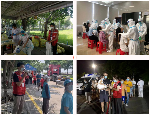 在這場沒有硝煙的戰(zhàn)爭中,一線醫(yī)務人員與志愿者忙碌的身影也成為最美的風景線。由兄弟鎮(zhèn)區(qū)、開發(fā)區(qū)各單位、企業(yè)員工組成的志愿者自動請纓、奮勇爭先,24小時為封閉區(qū)提供服務。他們用實際行動為“抗疫”助力,第一時間撐起“抗疫”合力。他們在檢測入口處指引群眾測體溫、指引葵花碼注冊、做登記、錄信息,維持現場秩序,為平安健康基地和平安中山貢獻力量。