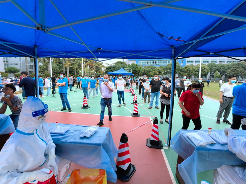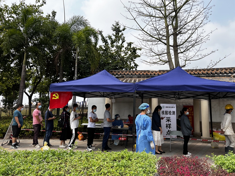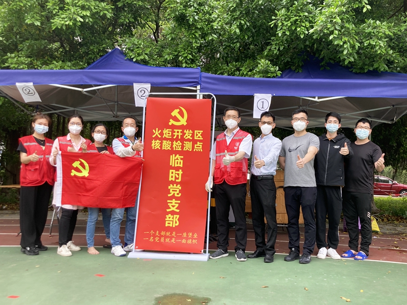 健康基地園區(qū)黨委和經(jīng)營(yíng)班子帶領(lǐng)全體黨員、員工組成10支先鋒隊(duì),奔赴健康基地園區(qū)工聯(lián)黨群服務(wù)中心、裕興工業(yè)園區(qū)、天鍵公司、武藏公司、濱江公園、標(biāo)志廣場(chǎng)、健康智慧小鎮(zhèn)、美味鮮公司、美捷時(shí)公司、樂(lè)心公司10個(gè)核酸檢測(cè)點(diǎn),配合醫(yī)務(wù)工作者積極奮戰(zhàn)。其中有7個(gè)點(diǎn)在臨時(shí)交通管制區(qū),黨員不畏艱險(xiǎn),按照“快、嚴(yán)、實(shí)”的工作要求,保障核酸檢測(cè)工作的有條不紊。在疫情防控工作中,黨員同志們牢記初心使命,勇于擔(dān)當(dāng)作為,冒著烈日和春雨,積極投身疫情防控最前沿,全力奮戰(zhàn)在急難險(xiǎn)重攻堅(jiān)任務(wù)第一線,切實(shí)發(fā)揮了黨員先鋒模范帶頭作用。