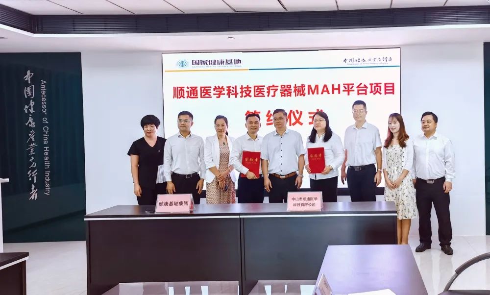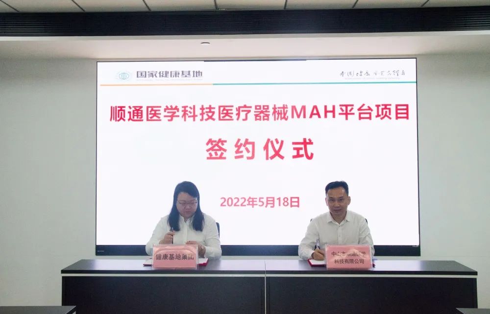 5月18日,中山市順通醫(yī)學(xué)科技有限公司醫(yī)療器械MAH持證平臺(tái)項(xiàng)目簽約落戶健康基地。中山港街道黨工委副書記徐世平、健康基地總經(jīng)理萬(wàn)鶴群、中山市順通醫(yī)學(xué)科技有限公司(下稱“順通醫(yī)學(xué)公司”)總經(jīng)理云惟鈺等出席簽約儀式。