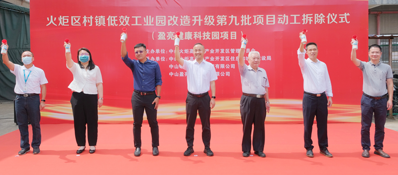 6月27日上午,火炬開發(fā)區(qū)舉行第九批低效工業(yè)園項目動工拆除儀式,健康基地東利工改片區(qū)盈亮健康科技園項目(下稱“盈亮項目”)、聯(lián)利路工改MO項目(下稱“聯(lián)利路MO項目”)正式開始拆除。