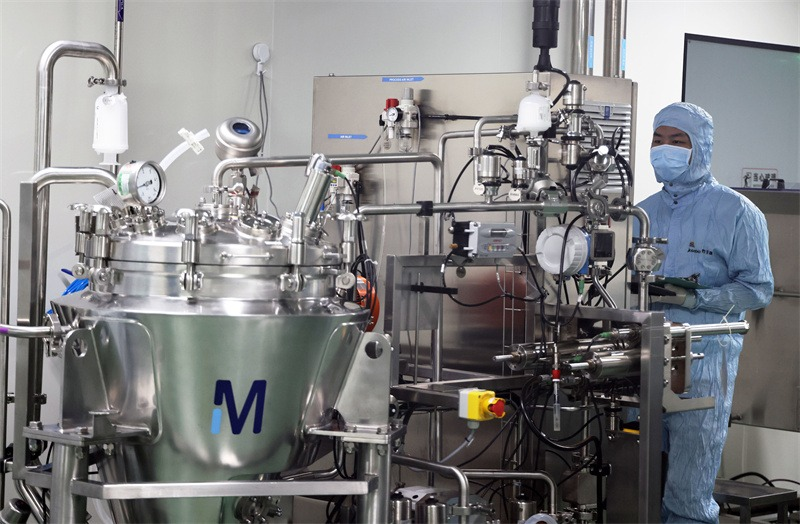 4月18日,記者來(lái)到位于火炬開(kāi)發(fā)區(qū)健康基地的康方生物進(jìn)行實(shí)地采訪。進(jìn)入康方生物研發(fā)生產(chǎn)車間走廊,透過(guò)嚴(yán)實(shí)的玻璃窗可以看到,一臺(tái)臺(tái)精密的儀器正在工作著,規(guī)律晃動(dòng)的培養(yǎng)液、鮮有工作人員的生產(chǎn)線……無(wú)不昭示著這是先進(jìn)的數(shù)字化智能生產(chǎn)車間。
