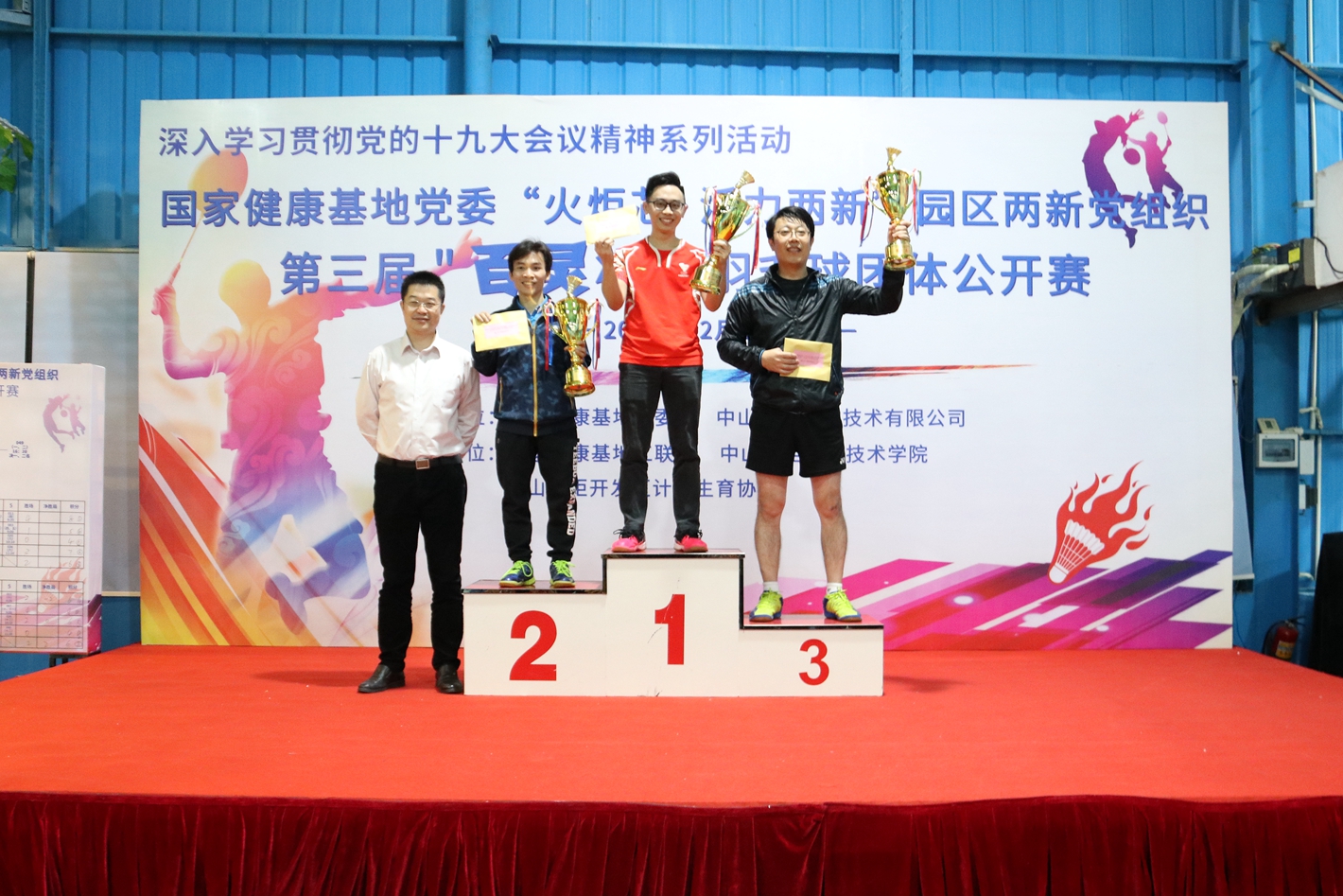 為深入學習貫徹落實黨的十九大會議精神,12月16日,國家健康基地黨委在開發(fā)區(qū)小隱千羽羽毛球館組織舉辦了“火炬芯·活力兩新”園區(qū)兩新黨組織第三屆“百靈杯”羽毛球團體公開賽。本次活動由健康基地黨委、中山百靈生物技術(shù)有限公司主辦,國家健康基地工聯(lián)會、中山火炬職業(yè)技術(shù)學院、開發(fā)區(qū)計生協(xié)會協(xié)辦。健康基地黨委書記方迎、副書記吳琰光出席活動。