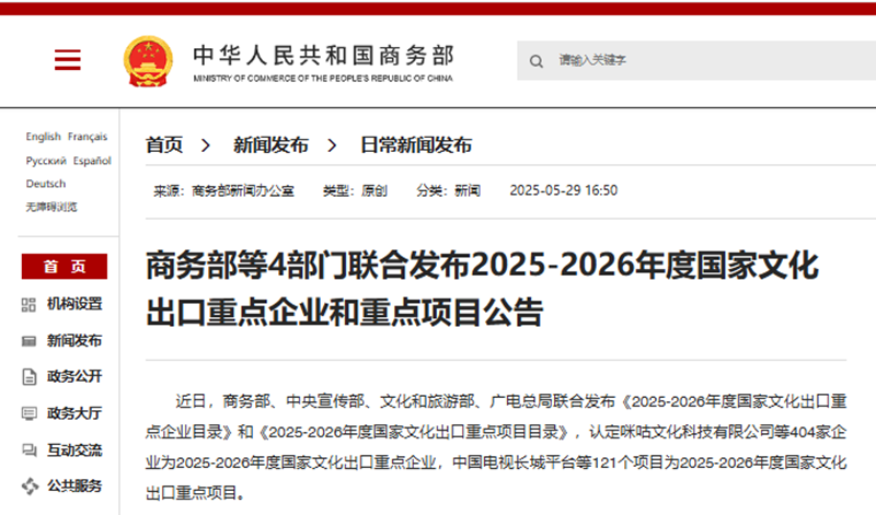 自2007年以來,商務(wù)部、中央宣傳部、文化和旅游部、廣電總局等4部門聯(lián)合,每兩年評審認(rèn)定一批國家文化出口重點(diǎn)企業(yè)和重點(diǎn)項(xiàng)目,旨在培育一批具有國際競爭力的外向型文化企業(yè),推動對外文化貿(mào)易高質(zhì)量發(fā)展,迄今累計(jì)評選出3329家企業(yè)、1298個項(xiàng)目,范圍涵蓋新聞出版、廣播影視、文化藝術(shù)、游戲動漫等文化貿(mào)易領(lǐng)域。在政策引導(dǎo)下,一大批文化企業(yè)積極開拓國際市場,文化出口規(guī)模不斷擴(kuò)大,國際競爭力不斷提升,成為推動文化走出去的骨干力量。