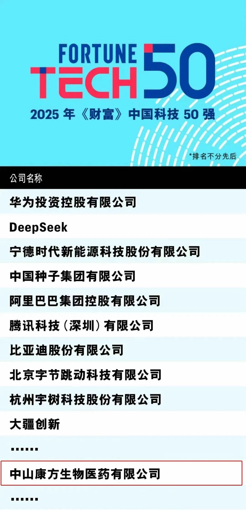 喜報!康方生物入選2025年《財富》中國科技50強(qiáng)