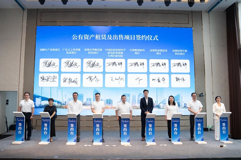 在公有資產租賃及出售項目簽約儀式上,健康基地集團分別與中國檢科院大灣區(qū)研究院、小核酸創(chuàng)新藥項目、諾維特利生物科技項目及高端裝備制造業(yè)項目上臺簽署協(xié)議。