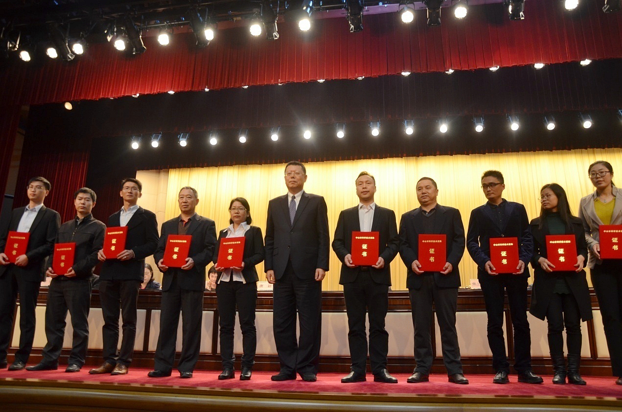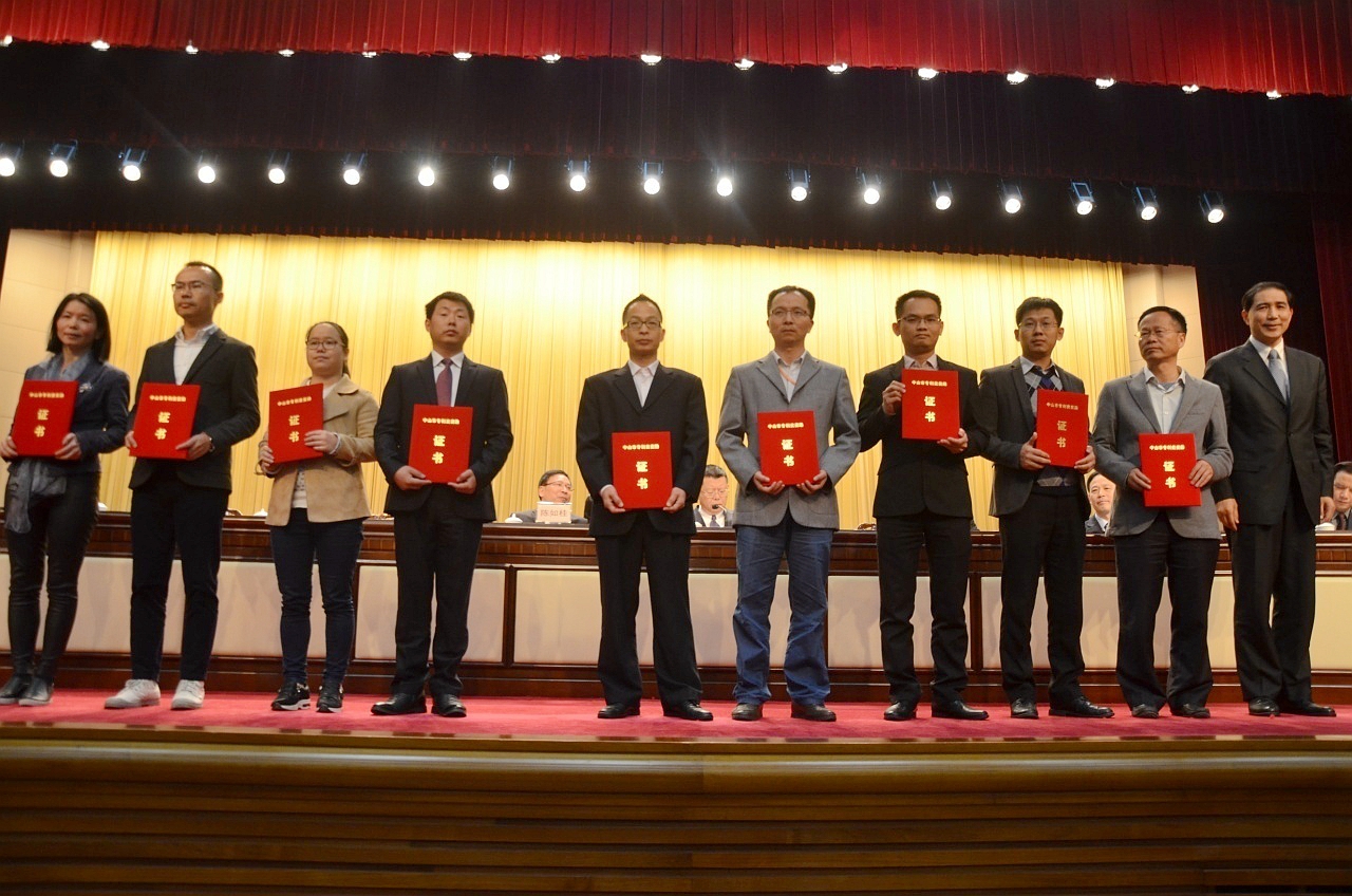 焦蘭生市長(zhǎng)為“中山市科學(xué)技術(shù)進(jìn)步獎(jiǎng)一等獎(jiǎng)”獲獎(jiǎng)單位頒獎(jiǎng)
