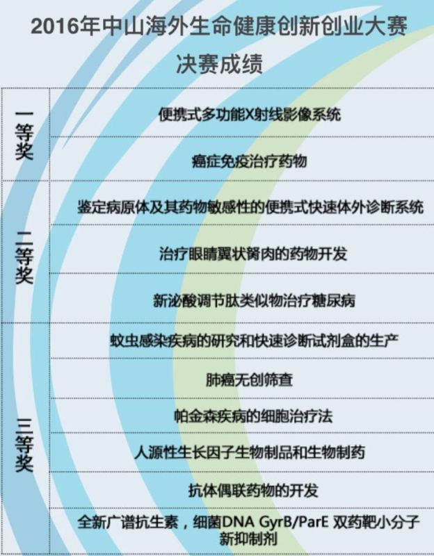 26個(gè)決賽項(xiàng)目全部來自生命健康產(chǎn)業(yè)領(lǐng)域,包括生物制藥、免疫治療、診斷試劑、醫(yī)療器械、健康管理等專業(yè)方向,這些決賽項(xiàng)目都是通過北美篩選、初賽,歷經(jīng)重重選拔才走到?jīng)Q賽舞臺(tái),項(xiàng)目大多擁有自主知識(shí)產(chǎn)權(quán)和發(fā)明專利,技術(shù)水平達(dá)到國際、國內(nèi)先進(jìn)水平,項(xiàng)目團(tuán)隊(duì)有強(qiáng)烈創(chuàng)業(yè)愿望,且有意回國并看好在中山創(chuàng)業(yè)發(fā)展的海外創(chuàng)新項(xiàng)目。