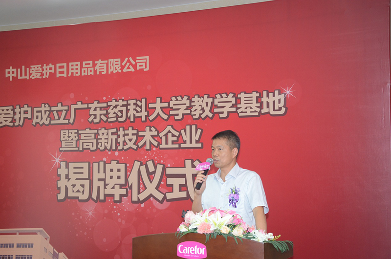6月28日,愛(ài)護(hù)公司“廣東藥科大學(xué)教學(xué)基地暨高新技術(shù)企業(yè)成立”揭牌儀式在健康基地園區(qū)愛(ài)護(hù)廠房舉行。火炬開(kāi)發(fā)區(qū)管委會(huì)主任招鴻、市科技局局長(zhǎng)尹明、副局長(zhǎng)林俊、市食品藥品監(jiān)督管理局局長(zhǎng)梁衛(wèi)華、健康基地總經(jīng)理方迎、廣東藥科大學(xué)醫(yī)藥化工學(xué)院院長(zhǎng)申?yáng)|升等參加會(huì)議。