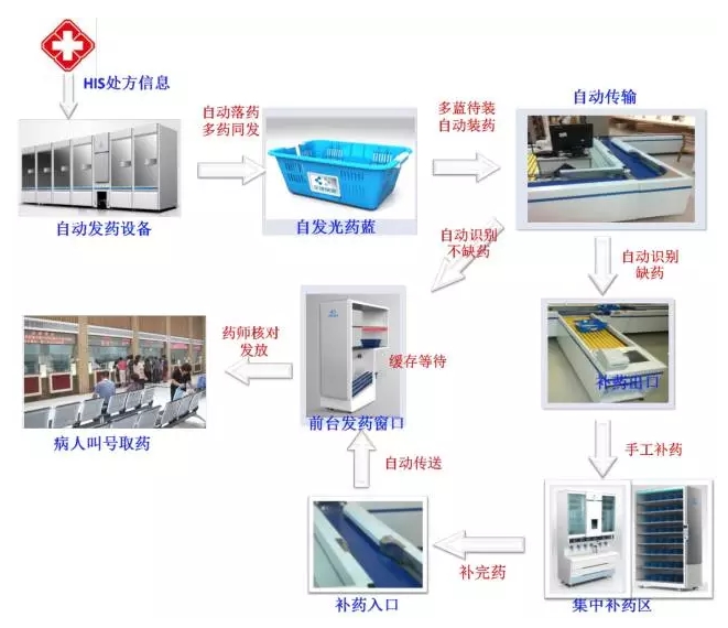 開發(fā)區(qū)醫(yī)院采用了智能發(fā)藥系統(tǒng)、智能加藥系統(tǒng)、智能傳輸系統(tǒng)、智能集中補藥區(qū)、發(fā)藥窗口系統(tǒng)……這套智能系統(tǒng)由九州通醫(yī)藥集團旗下湖北九州通達科技開發(fā)有限公司主辦,由健康基地園區(qū)企業(yè)廣東九州通醫(yī)藥有限公司承辦。