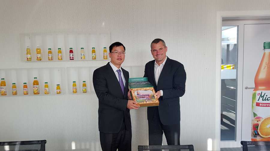 瑞士當(dāng)?shù)貢r(shí)間10月20日上午,由中山市食品藥品監(jiān)督管理局副局長曾德強(qiáng)帶隊(duì),國家健康基地副總經(jīng)理林霞等中山經(jīng)貿(mào)代表團(tuán)一行參觀考察位于瑞士Rothrist的Rivella公司。