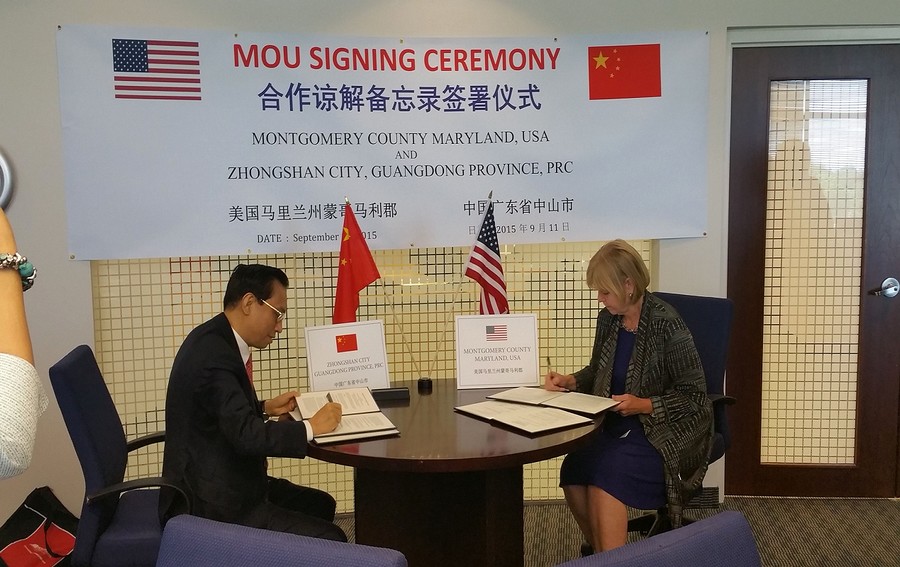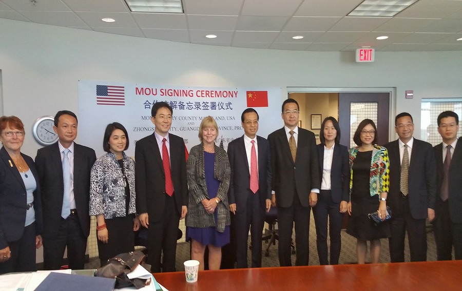 美國當(dāng)?shù)貢r間9月11日,在蒙哥馬利郡(下稱:蒙郡)政府,中山市委副書記、市長陳良賢與蒙郡政府簽署了《友好合作協(xié)議書》。雙方就未來多個層面尤其是健康醫(yī)藥產(chǎn)業(yè)的合作交流展開探討。中山招商經(jīng)貿(mào)團成員共同見證簽約儀式。