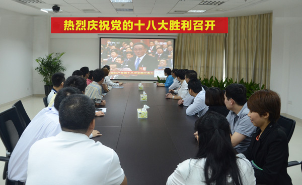早上不到九點,健康基地多功能會議室里座無虛席,總公司全體黨員干部和園區(qū)企業(yè)黨員代表近百人歡聚一堂,共同觀看了黨的十八大開幕式。