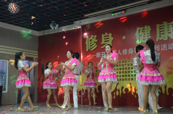 修身健康晚會節(jié)目內(nèi)容豐富、精彩紛呈。精彩的節(jié)目由國家健康基地園區(qū)企業(yè)九州通、三才醫(yī)藥、海濟醫(yī)藥、華志科技和火炬開發(fā)區(qū)藝術(shù)團共同演繹,顯現(xiàn)了國家健康基地和新開發(fā)區(qū)人良好的精神風(fēng)貌,積極參與全民修身活動。會上,谷德慶主任向新開發(fā)區(qū)人提出了倡議;健康基地領(lǐng)導(dǎo)也向基地園區(qū)企業(yè)發(fā)出了積極投身修身行動的號召;開發(fā)區(qū)百佳代表宣讀了《人人修身 個個給力——新開發(fā)區(qū)人修身倡議書》!冻h書》中,開發(fā)區(qū)流動人口管理辦公室向全區(qū)所有新開發(fā)區(qū)人發(fā)出倡議:從自身做起,從小事做起;做“四有”新開發(fā)區(qū)人;弘揚社會正氣,引領(lǐng)文明風(fēng)尚。當晚,代表新開發(fā)區(qū)人修身系列行動的修身健康、修身普惠、修身奉獻、修身低碳、修身共融共五個代表隊的人員上臺作了展示。晚會最后舉行了新開發(fā)區(qū)人修身系列行動的啟動儀式,由劉少山副書記宣布新開發(fā)區(qū)人修身系列行動正式啟動。拉開了新開發(fā)區(qū)人修身行動的序幕!