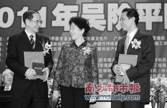 鐘南山、韓濟(jì)生兩位院士分獲2011年吳階平醫(yī)學(xué)獎(jiǎng)。南都記者吳進(jìn)攝