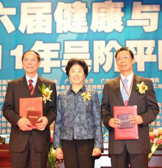 鍾南山(右)、韓濟(jì)生(左)獲得2011年吳階平醫(yī)學(xué)獎。全國政協(xié)副主席、吳階平醫(yī)學(xué)獎評委王志珍向兩位獲獎?wù)哳C發(fā)獲獎證書和獎?wù)?/FONT>